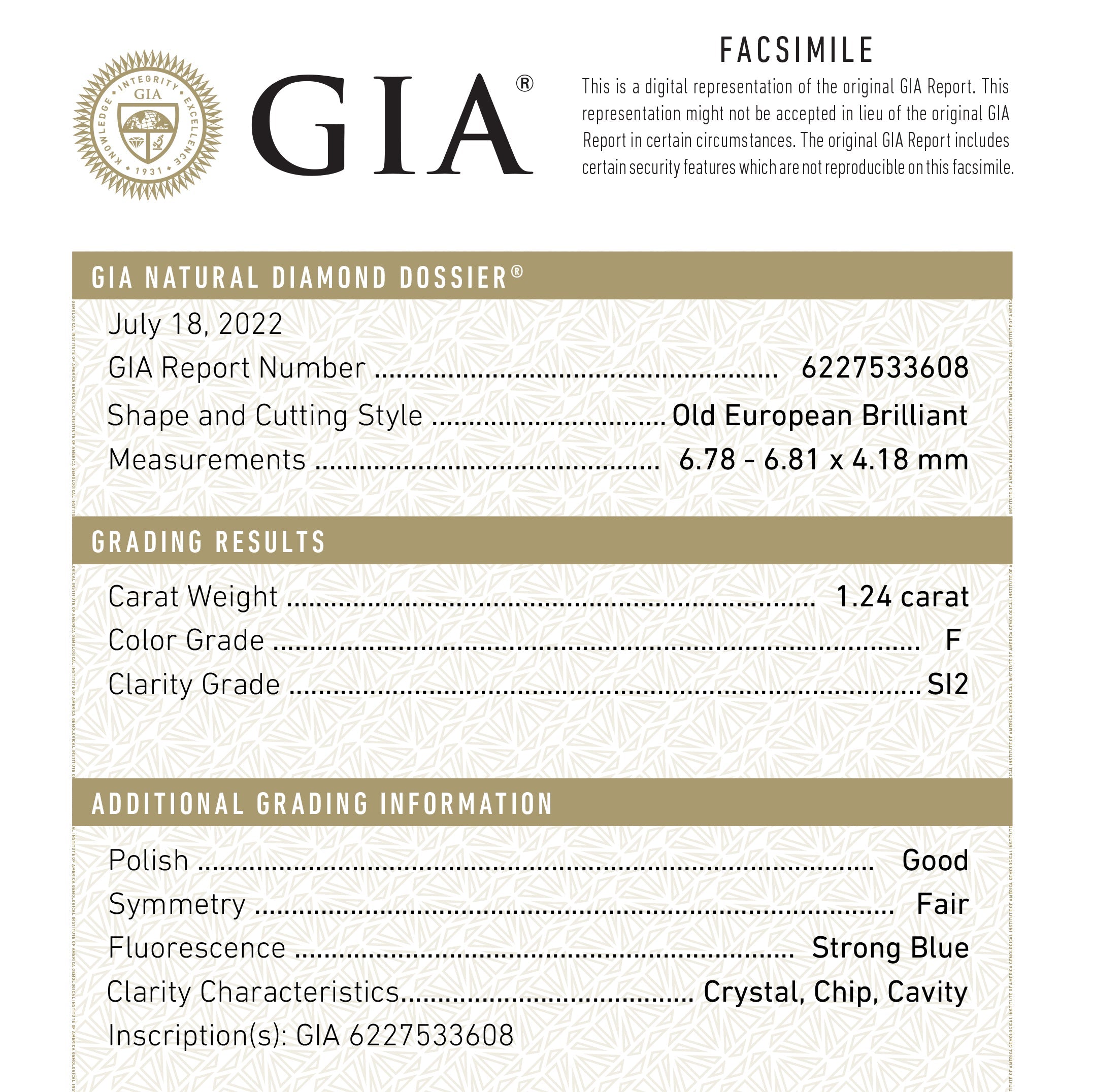 1.24ct 6.81x6.78x4.18mm GIA SI2 F Antique Old European Cut 22065-01