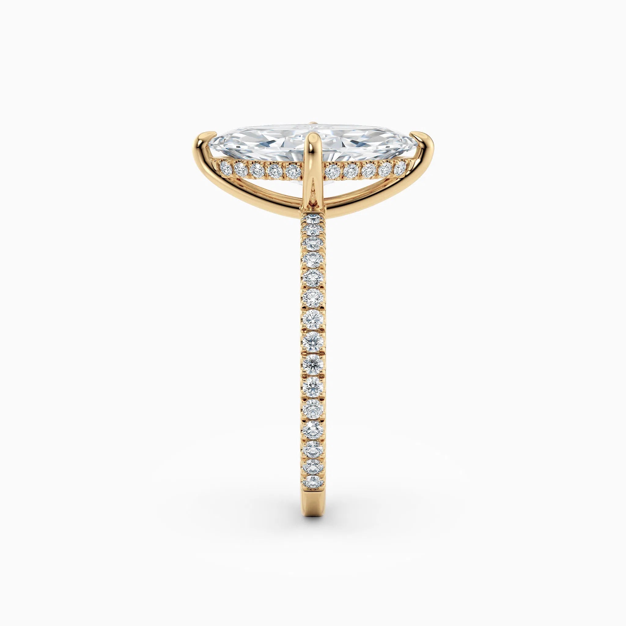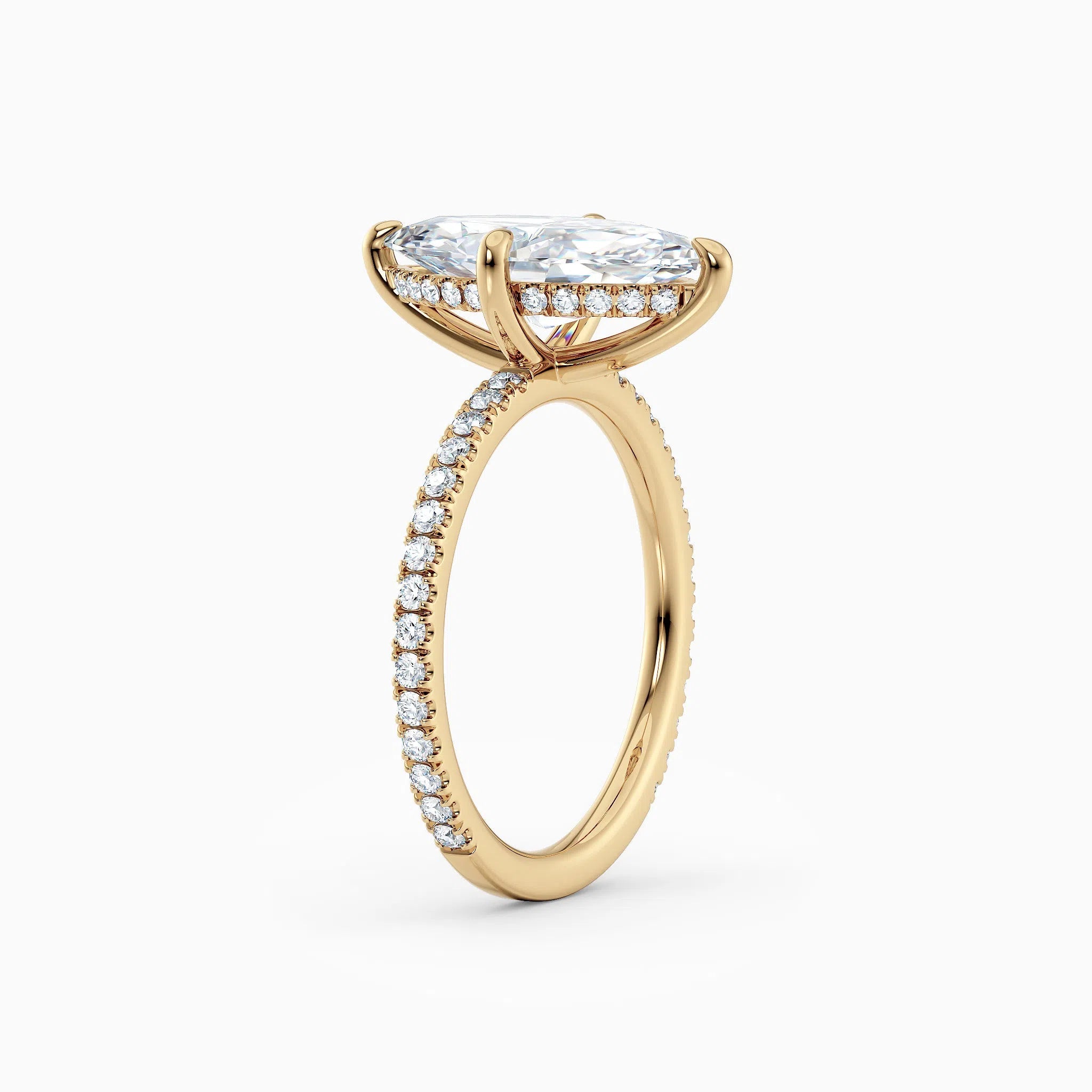 Willow | Marquise Hidden Halo Engagement Ring with Pave Band