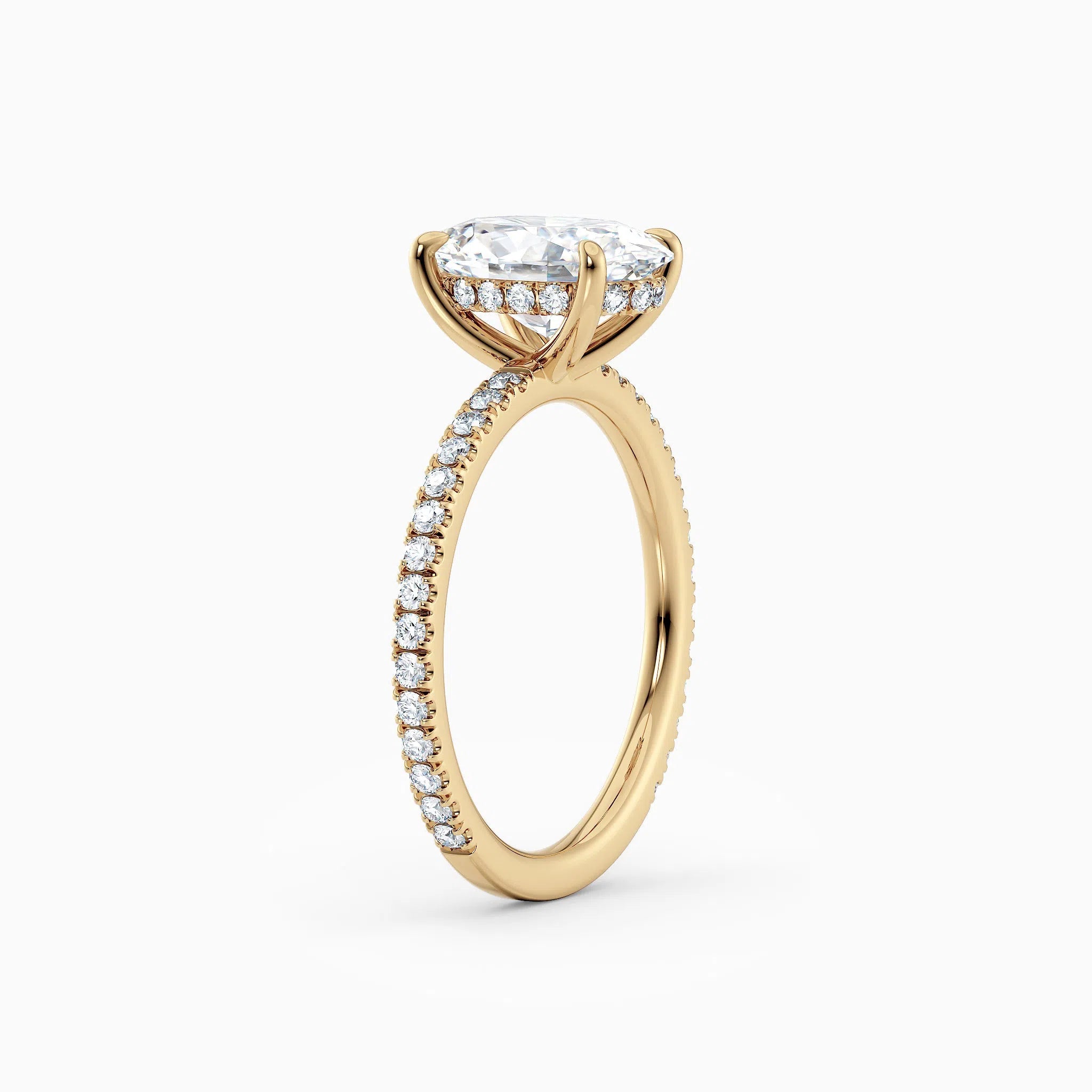 Willow | Oval Cut Hidden Halo Engagement Ring with Pave Band