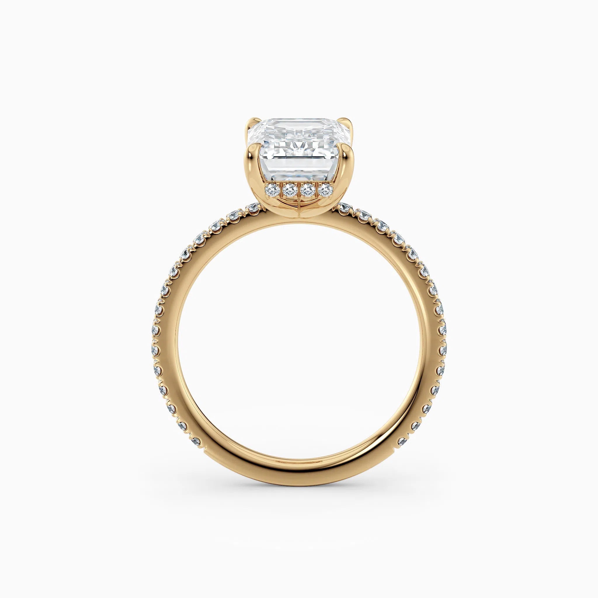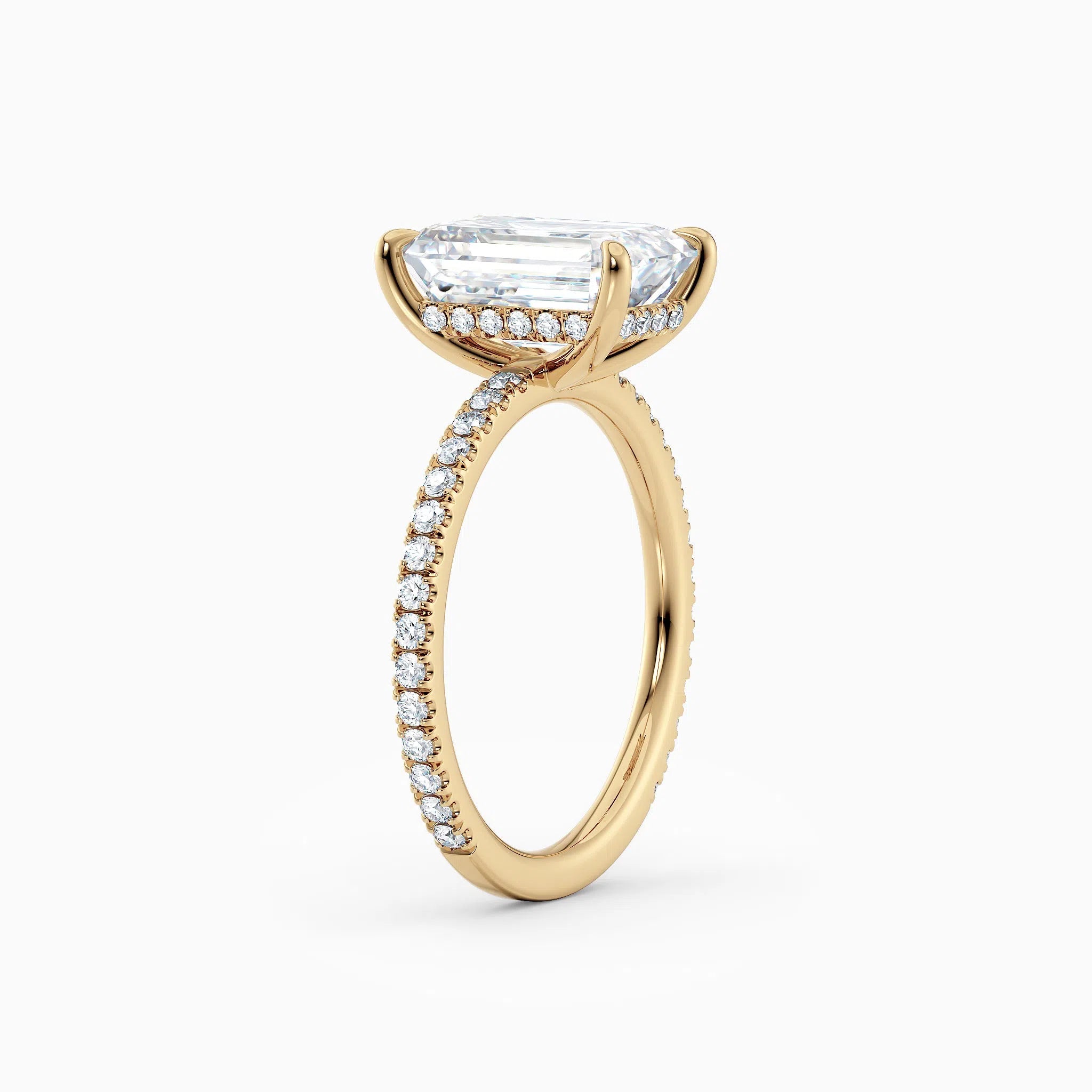 Willow | Emerald Hidden Halo Engagement Ring with Pave Band