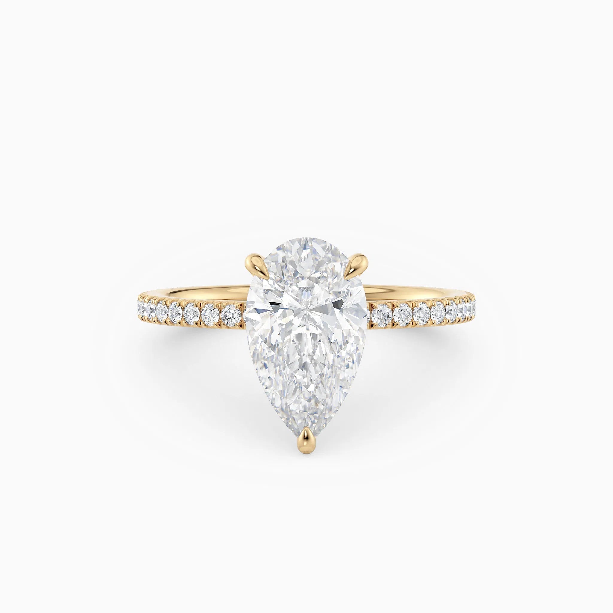 Willow | Pear Cut Hidden Halo Engagement Ring with Pave Band
