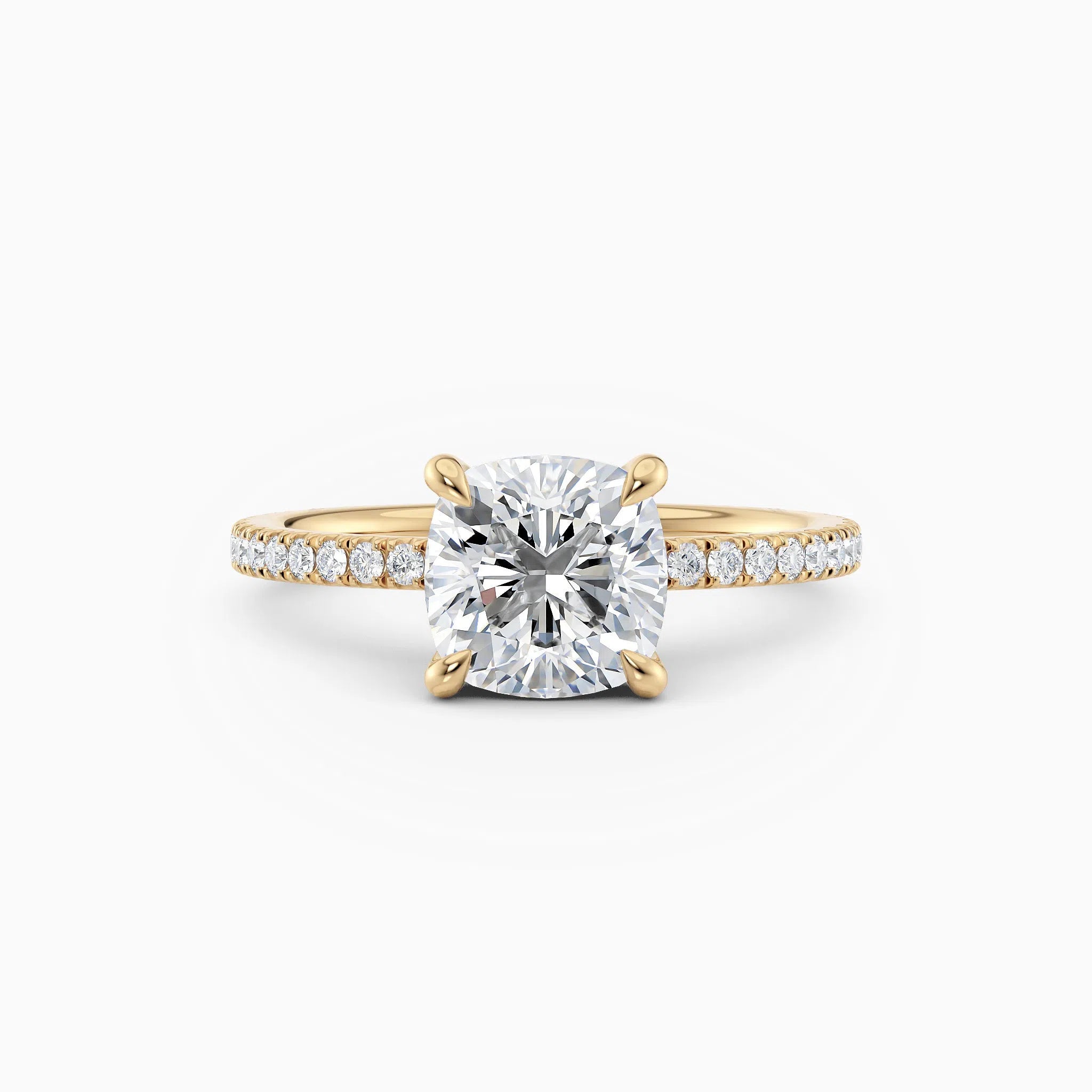 Willow | Cushion Hidden Halo Engagement Ring with Pave Band
