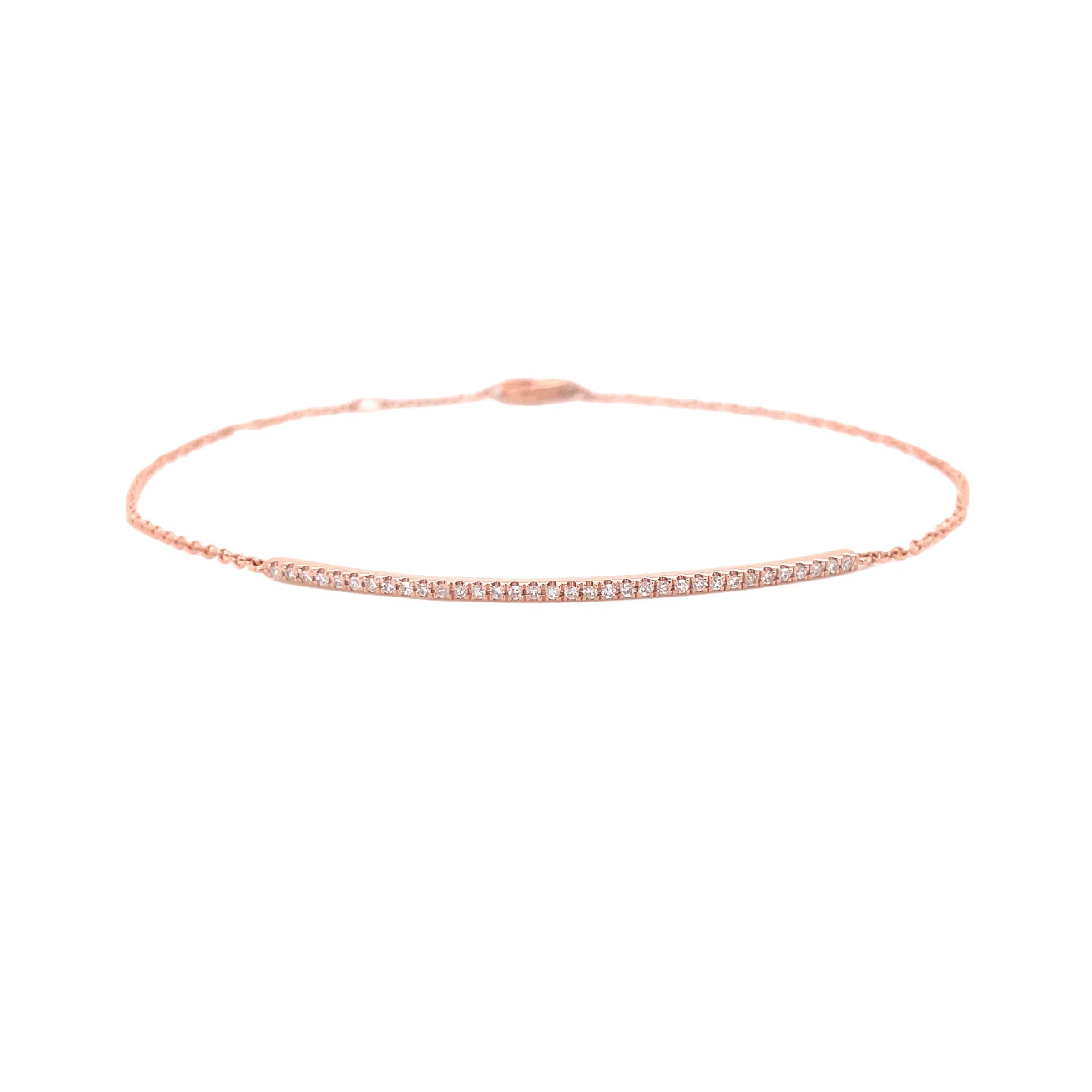 Thin Prong Set Diamond Bar Bracelet - Rose Gold