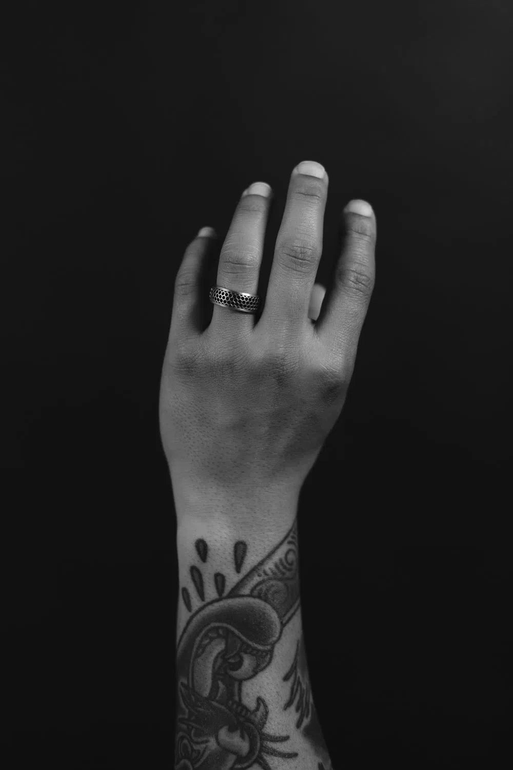 Our signature Honeycomb Wedding Band in a 8.5mm width.