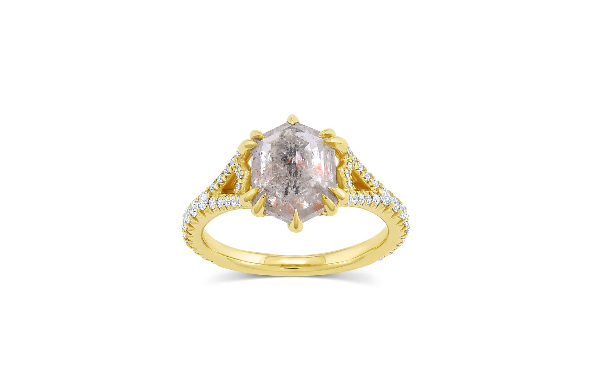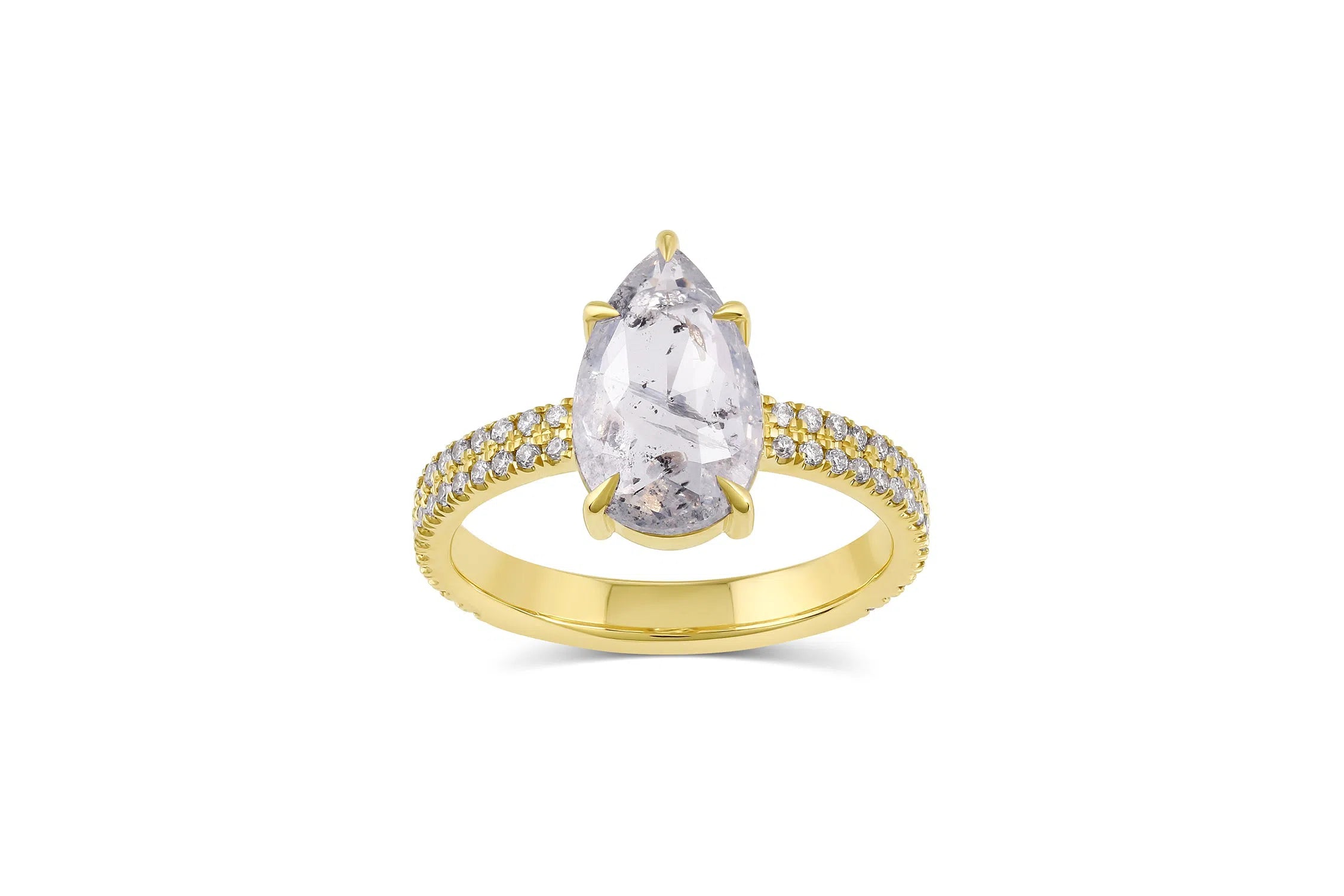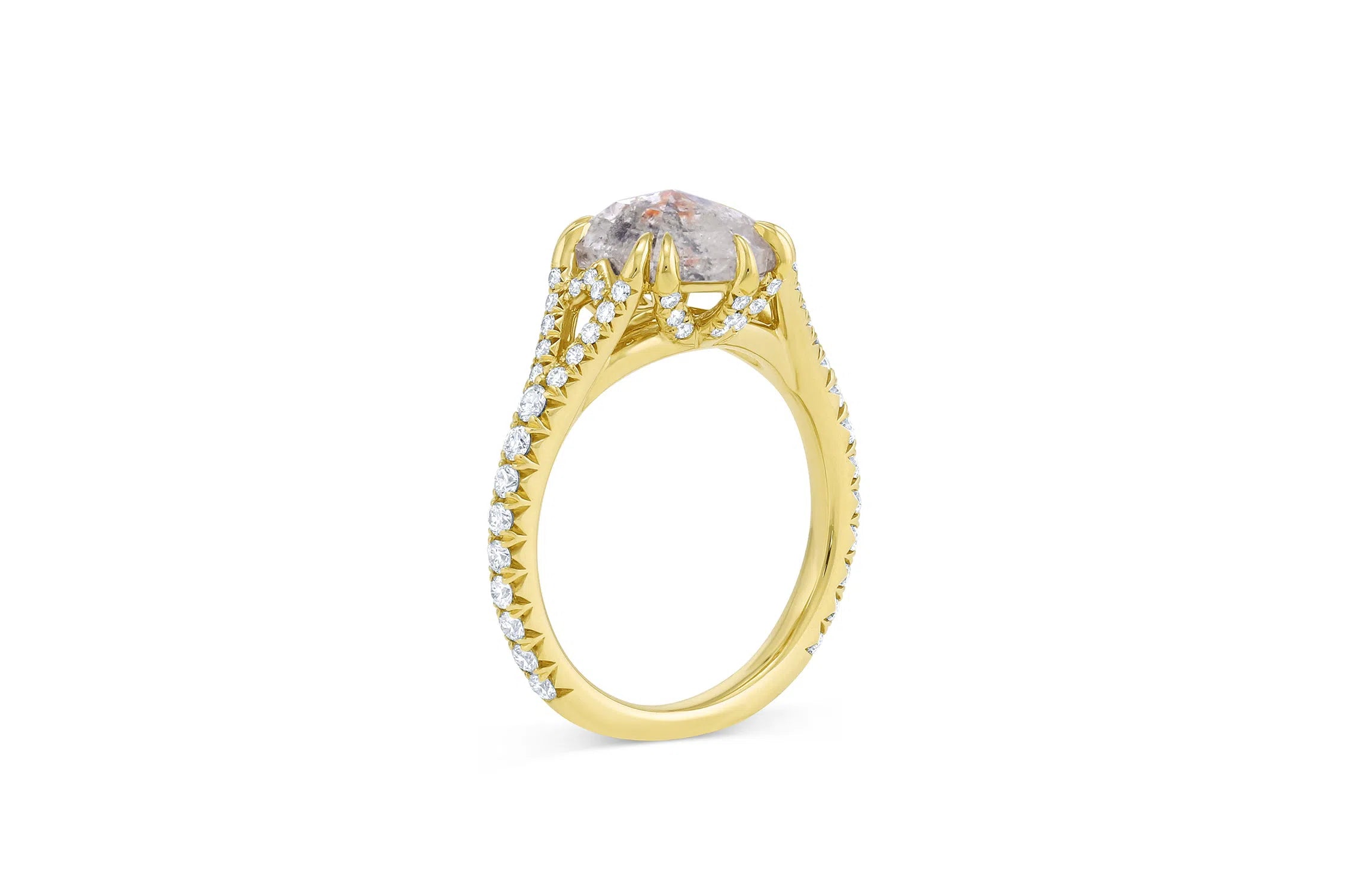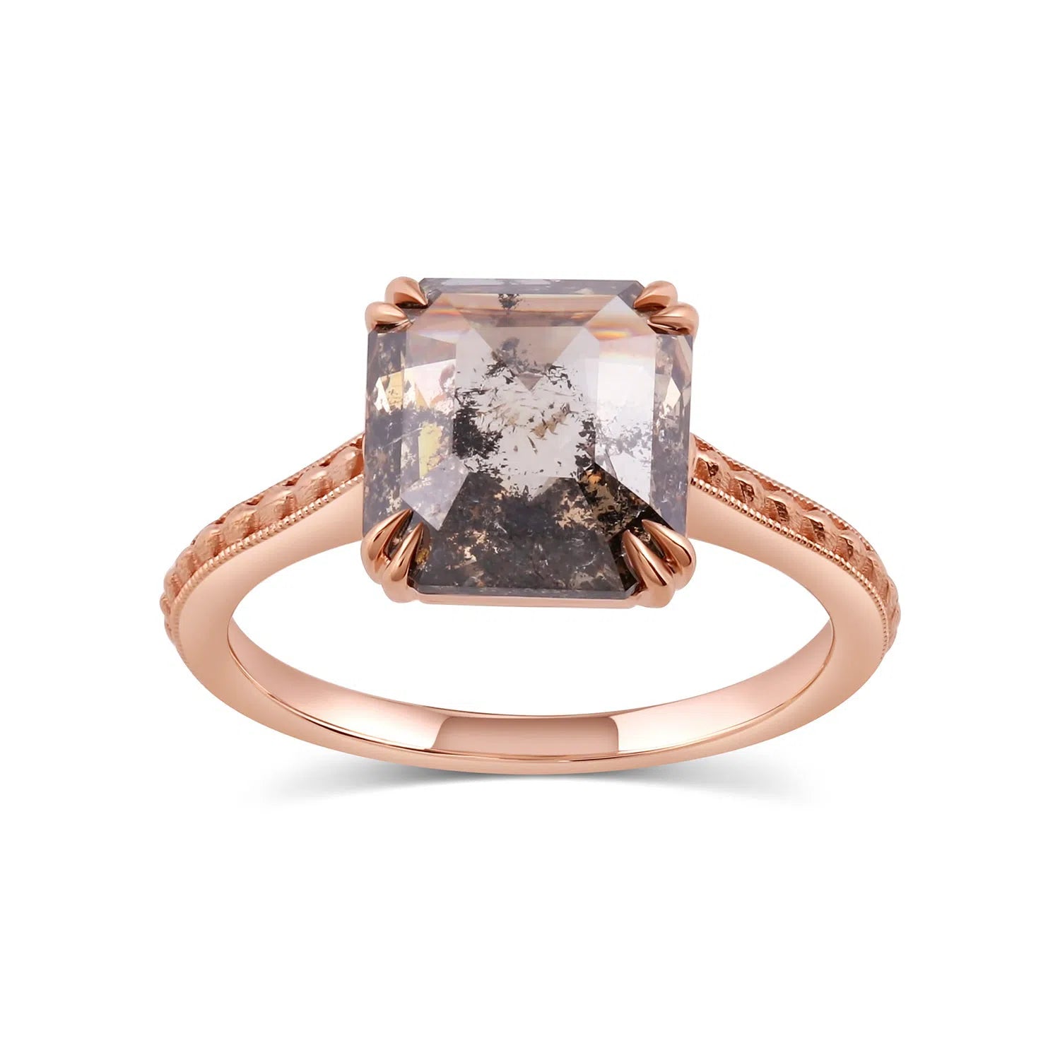 Our salt and pepper diamond rings have a unique beauty and splash of personality to go along with their name. The term 'salt and pepper' refers to the look of a particular diamond that features a mix of black and white inclusions. This mix creates one unique diamond after another with smoky and smooth speckled looks.