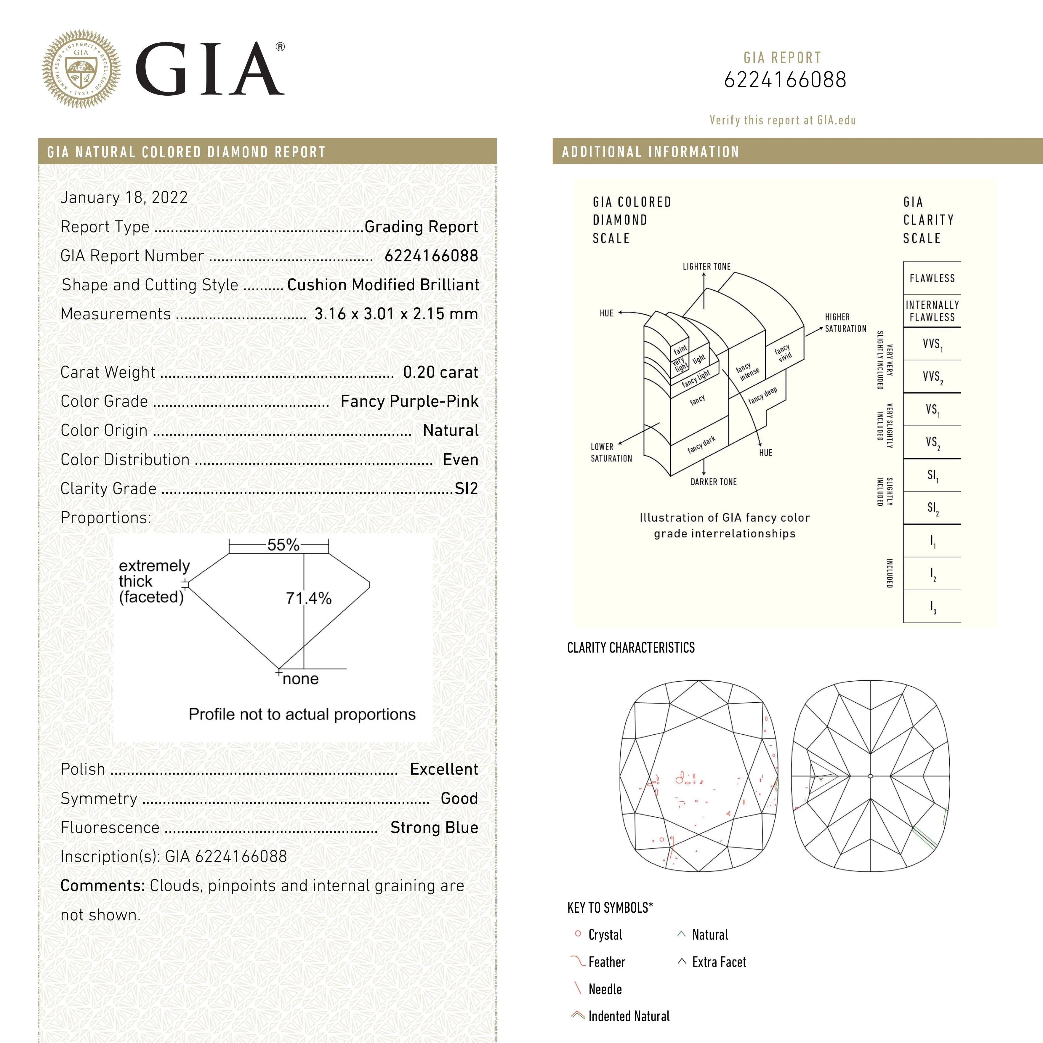 0.20ct 3.16x3.01x2.15mm GIA SI2 Fancy Purple-Pink Cushion Brilliant 🇦🇺 24098-01
