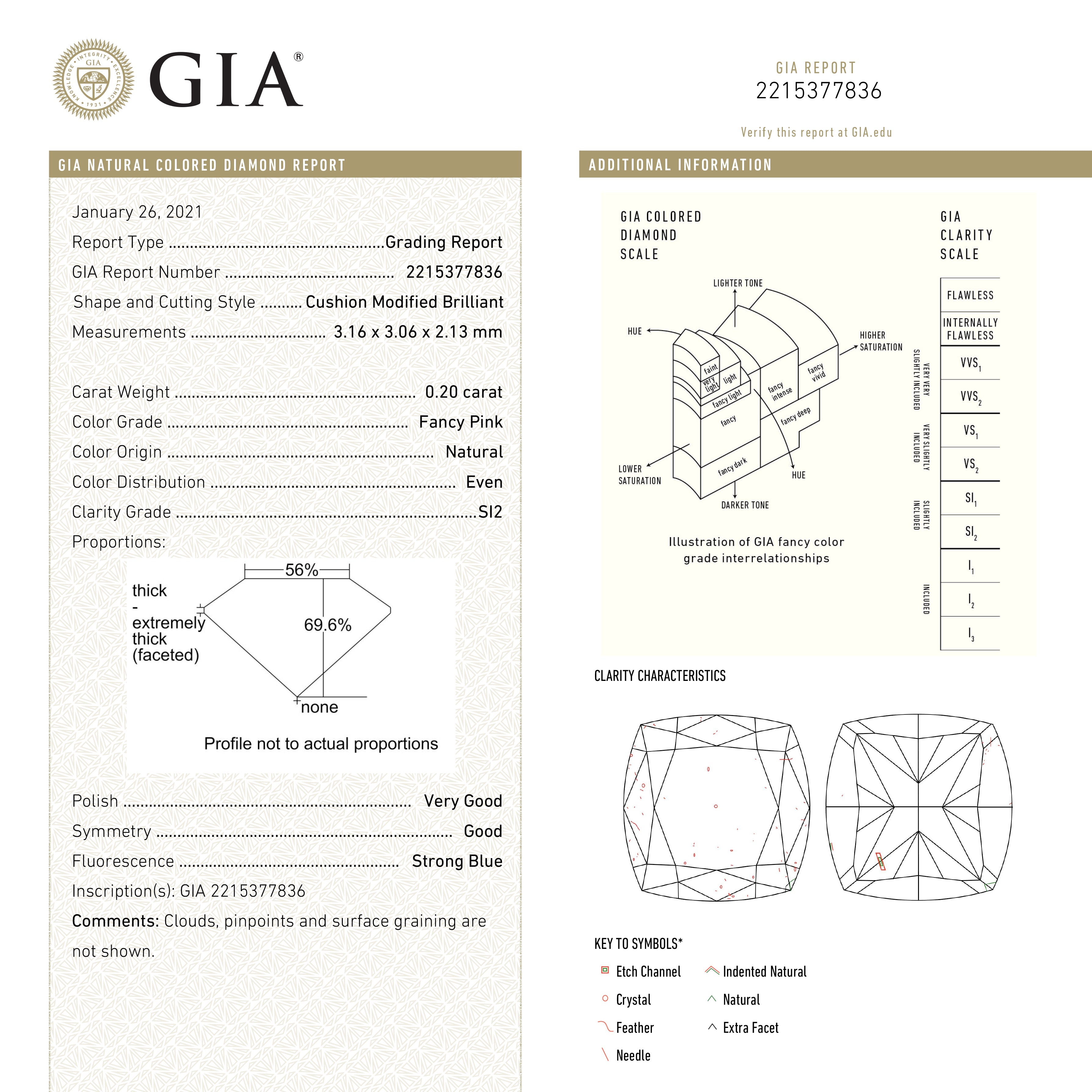 0.20ct 3.16x3.06x2.13mm GIA SI2 Fancy Pink Cushion Brilliant 🇦🇺 24099-01