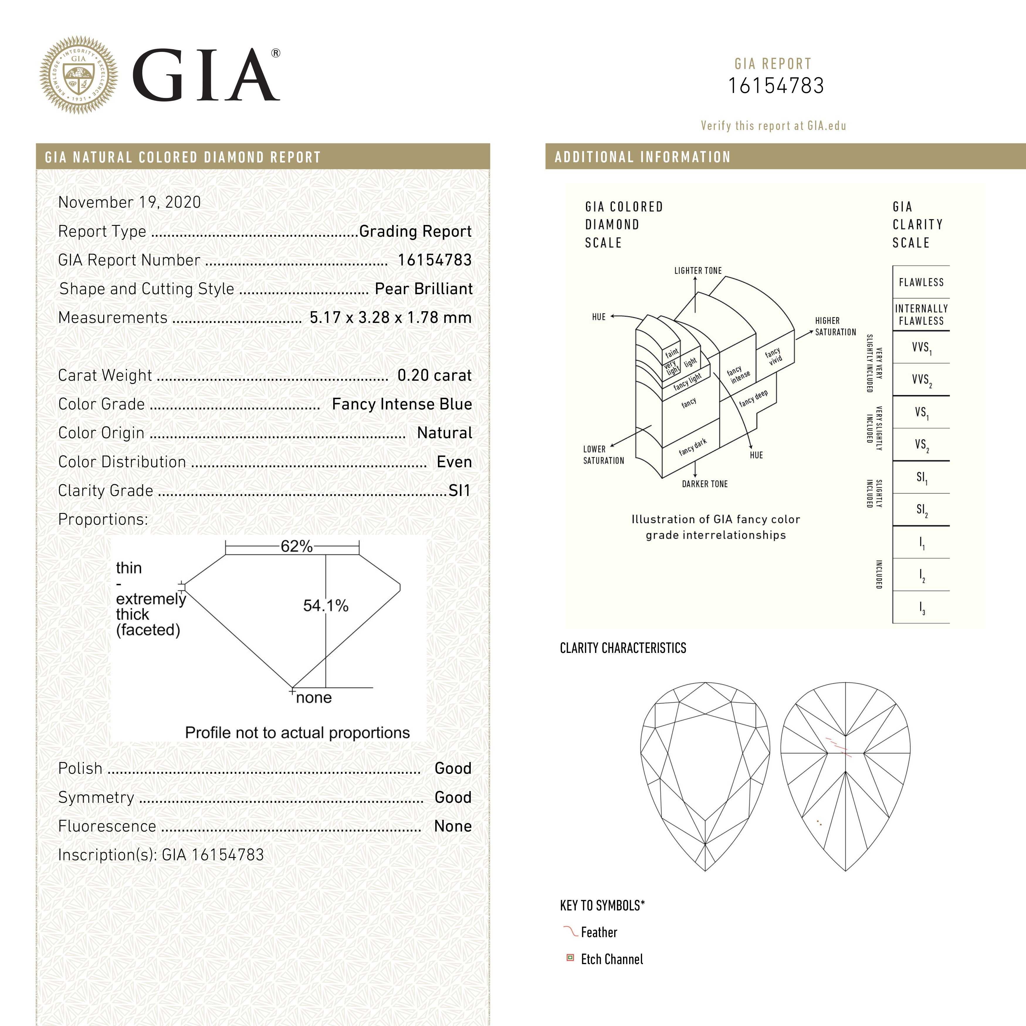 0.20ct 5.17x3.28x1.78mm GIA SI1 Fancy Intense Blue Pear Brilliant 24134-01