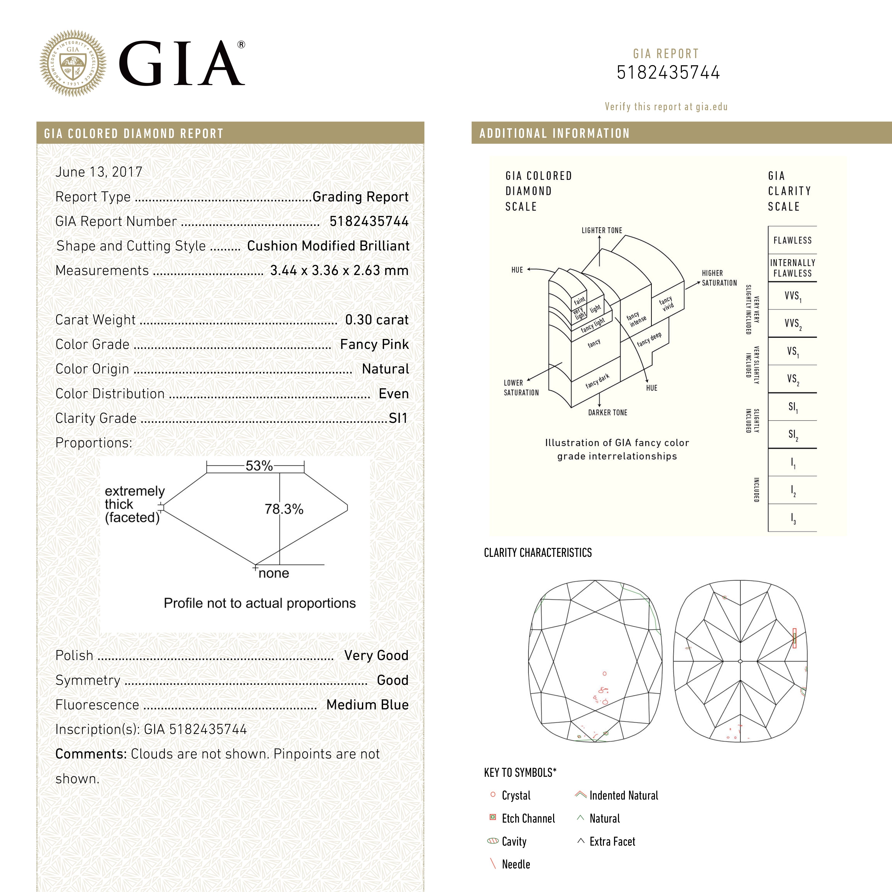 0.30ct 3.44x3.36x2.63mm GIA SI1 Fancy Pink Cushion Brilliant 🇦🇺 24103-01