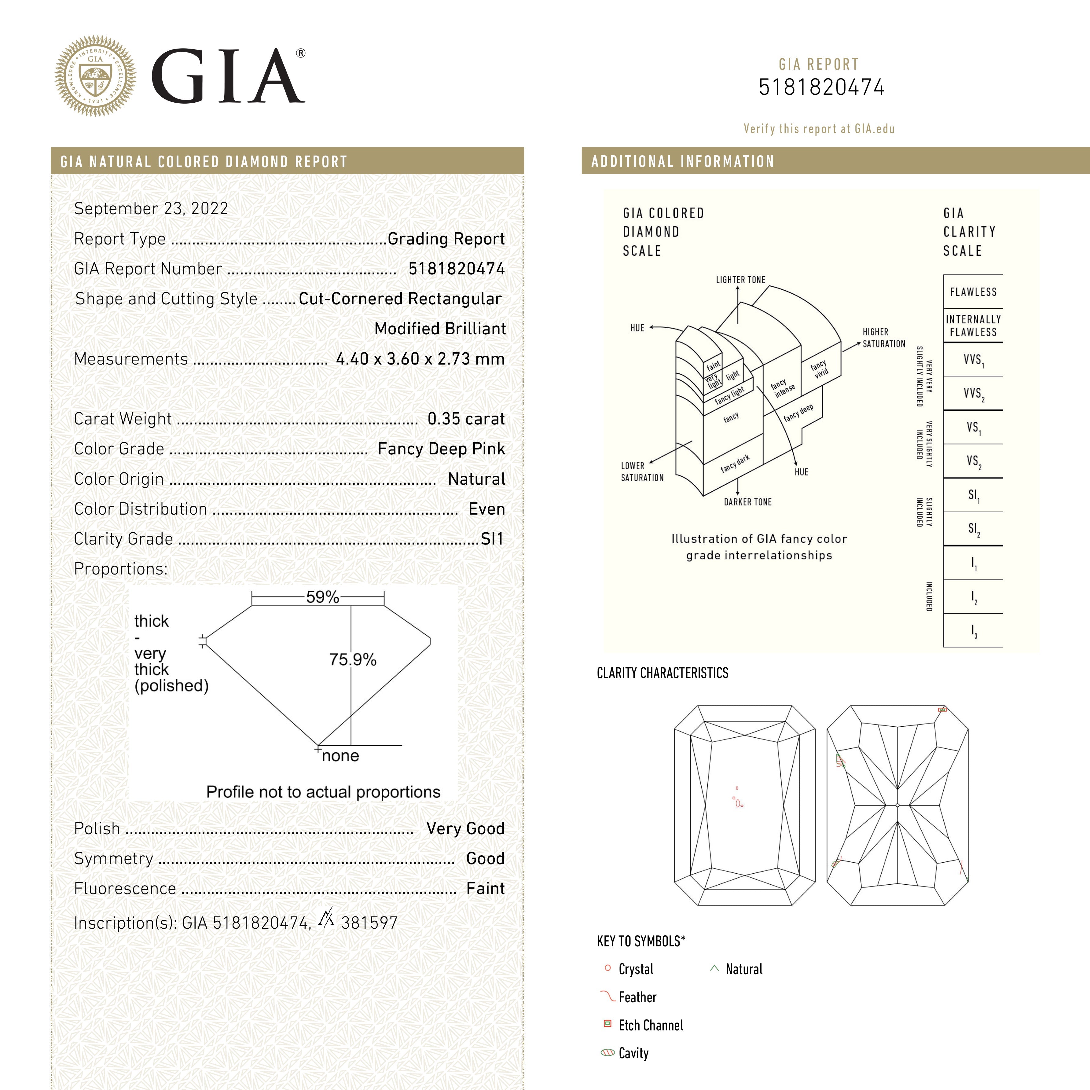GIA Fancy Deep Pink Cut Corner Rectangle Brilliant