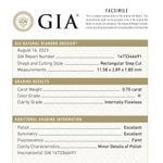0.70ct 11.58x2.89x1.80mm GIA Internally Flawless H Baguette Step Cut 24300-01