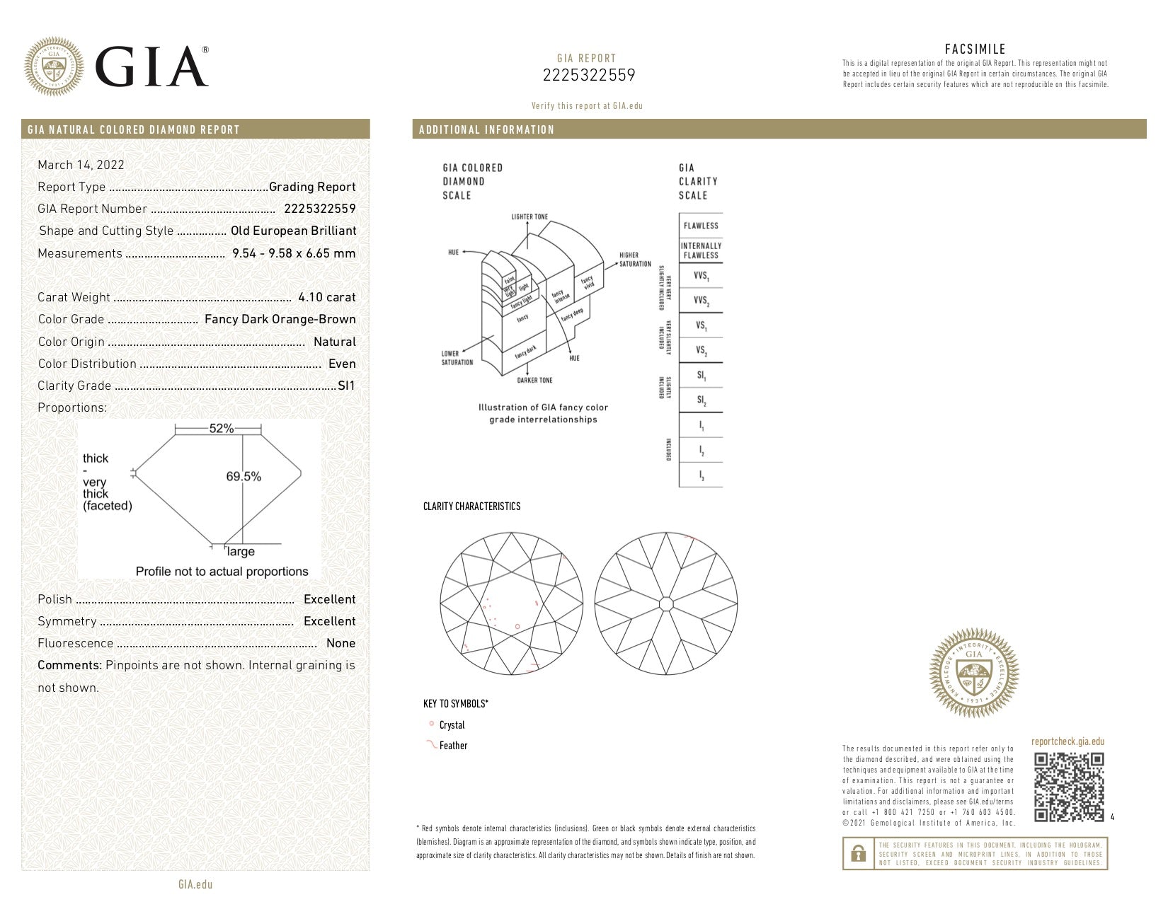 4.10ct 9.57x9.54x6.79mm GIA SI1 Fancy Dark Orange-Brown Modern Antique Old European Cut 19400-01