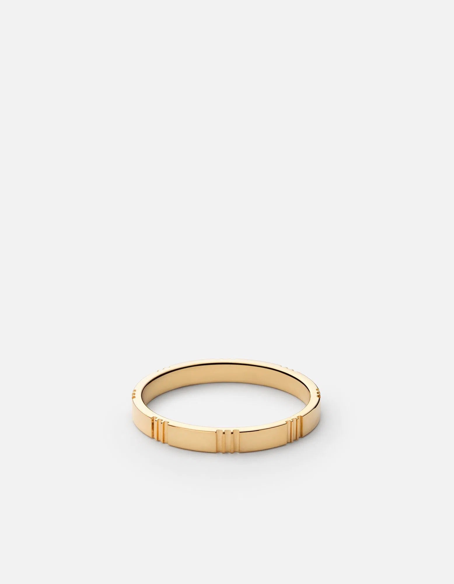 The Bolt Ring made in lightweight gold vermeil features an engraved linear pattern reminiscent of the ridged style popularized in the 1970s. The reinvented classic you can't resist.